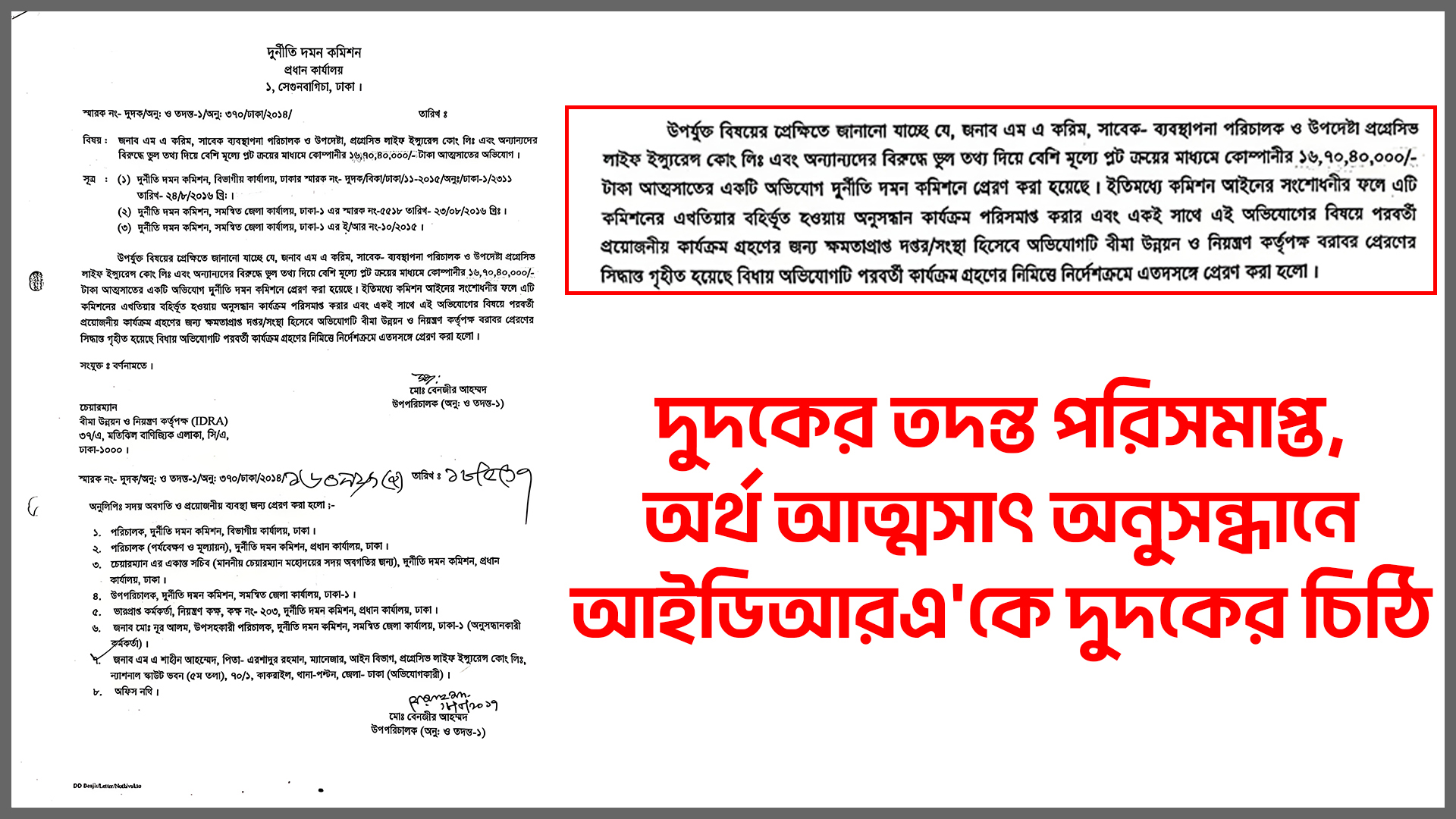দুদকের চিঠির ৮ মাস পর আইডিআরএ'র তদন্ত
