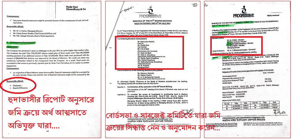 অনুসন্ধানে দেখা যায়, ইস্টার্ন হাউজিং লিমিটেডের আফতাবনগর প্রকল্প থেকে প্রগ্রেসিভ লাইফ ২০.৬২ কাঠার তিনটি প্লট (নং এল-৪২, ৪৪ ও এম-৩৯) মোট ২৫ কোটি ৬২ লাখ ৯০ হাজার টাকায়। এই টাকা পরিশোধ করা হয় প্রাইম ব্যাংক ও জনতা ব্যাংকের মাধ্যমে। ইস্টার্ণ হাউজিংকে মোট পরিশোধ করা হয় ২৬ কোটি ৫৬ লাখ ২৯ হাজার ৭৪ টাকা। যার মধ্যে ১৮ লাখ ৪২ হাজার ৯শ’ টাকা অন্যান্য চার্জ।