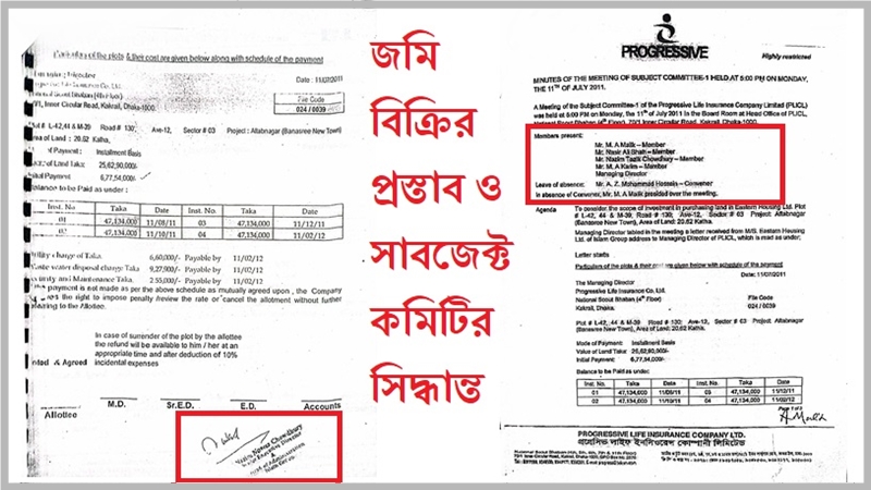 ইস্টার্ণ হাউজিং প্রগ্রেসিভ লাইফের কাছে জমি বিক্রির প্রস্তাব করেন ২০১১ সালের ১১ জুলাই। ইস্টার্ণ হাইজিংয়ের পক্ষে এই প্রস্তাব করে নাজিম নওয়াজ চৌধুরী। ওই দিনই প্রগ্রেসিভ লাইফের সাবজেক্ট কমিটি-১ জমি ক্রয়ের সিদ্ধান্ত নেন। সাবজেক্ট কমিটির ওই সভায় ছিলেন জমি বিক্রির প্রস্তাবকারির ছোট ভাই নাজিম তাজিক চৌধুরী ও তার দুলাভাই নাসির আলি শাহ। এছাড়া পরিচালক এম এ মলিক ওরফে আব্দুল মালিক এবং কোম্পানির ব্যবস্থাপনা পরিচালক এম, এ করিম।