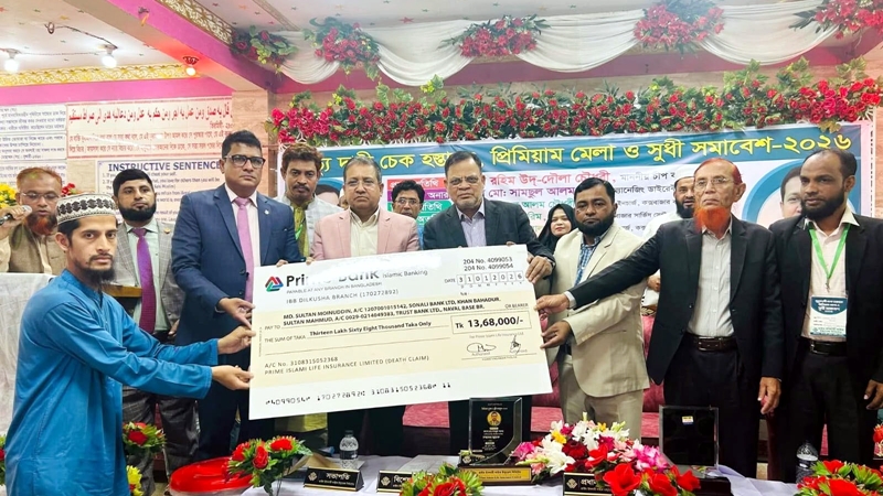 সংবাদ বিজ্ঞপ্তি: প্রাইম ইসলামী লাইফ ইন্স্যুরেন্স লিমিটেডের কক্সবাজার করপোরেট জোনের উদ্যোগে মৃত্যুদাবির চেক হস্তান্তর, প্রিমিয়াম মেলা ও সুধী সমাবেশ–২০২৬ সফলভাবে অনুষ্ঠিত হয়েছে। শনিবার (৭ ফেব্রুয়ারি) চট্টগ্রামের বাঁশখালীতে হাজী সুলতান আহমেদ কমিউনিটি সেন্টারে এই অনুষ্ঠান আয়োজিত হয়।