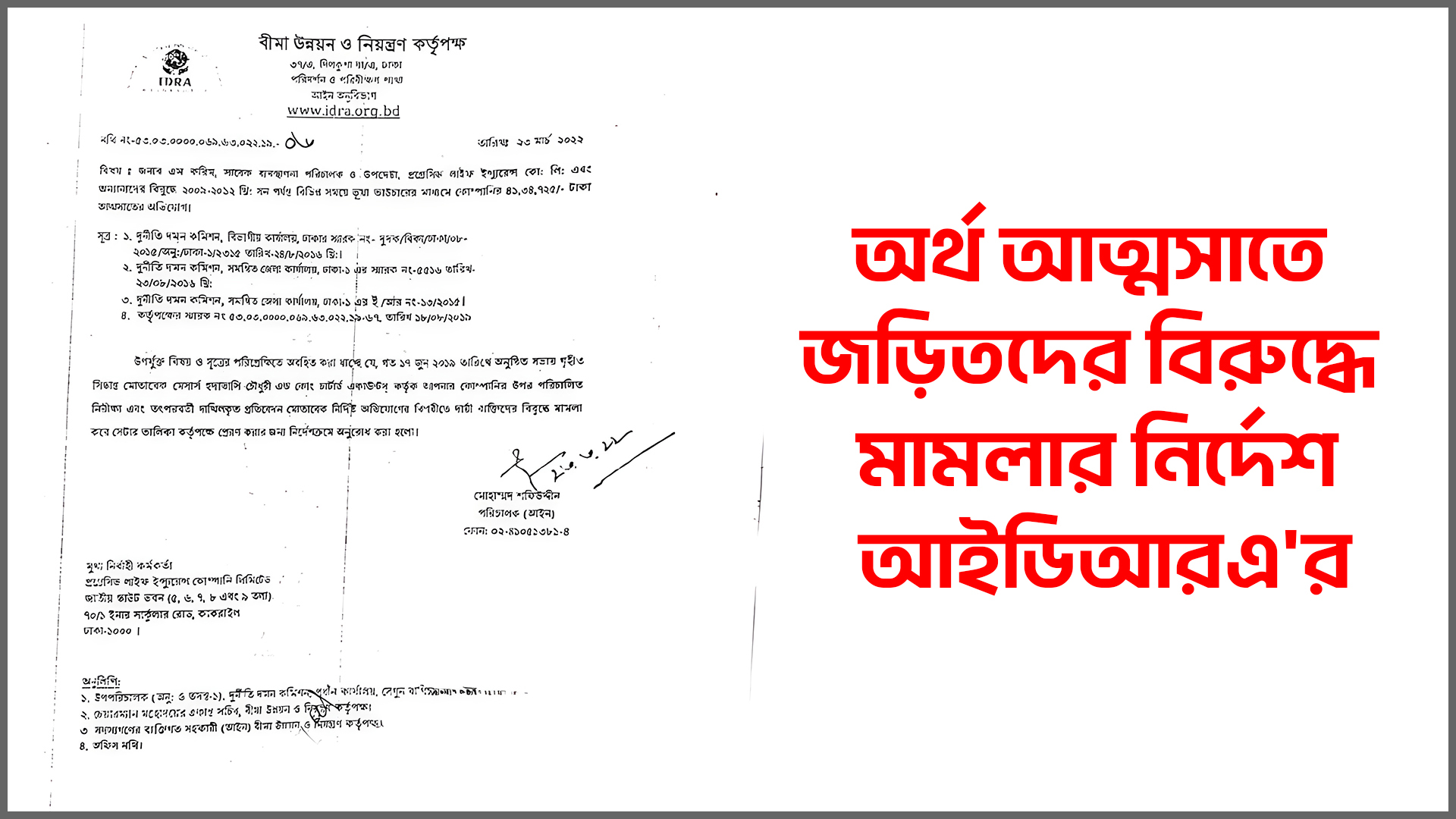 আত্মসাতে জড়িতদেরকেই মামলা করার নির্দেশ দিল আইডিআরএ